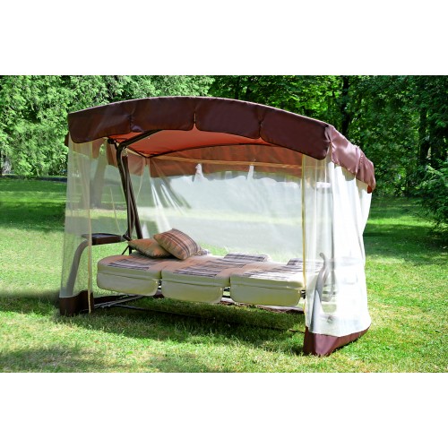 Тент: тент ткань с водоотталкивающей отделкой 100% п/э плотность 125г/м2, с противомоскитной сеткой (полотно гардинное основовязаное 100% п/э плотность 39г/м2) - фиксация сетки на тканевом тенте осуществляется с помощью горизонтальных и вертикальных застежек – «молний».
