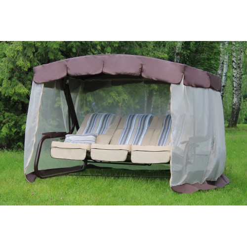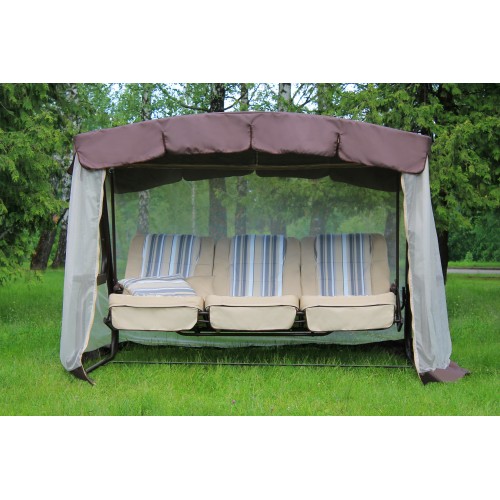 Тент: тент ткань с водоотталкивающей отделкой 100% п/э плотность 125г/м2, с противомоскитной сеткой (полотно гардинное основовязаное 100% п/э плотность 39г/м2) - фиксация сетки на тканевом тенте осуществляется с помощью горизонтальных и вертикальных застежек – «молний».