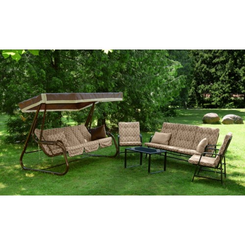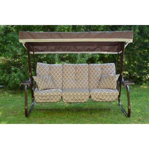 Мягкий элемент: ткань 40% п/э – 60% хлопок, плотность 220-230г/м2, наполнитель мягкого элемента поролон + синтепон общей толщиной 80мм. Увеличенная высота спинки сиденья. Декор мягкого элемента тафтингом. Подушки – 2шт двухцветные.(наполнитель – синтепон)
