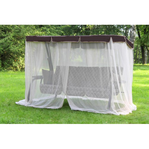 Тент: ткань с водоотталкивающей отделкой 100% п/э 180г/м2., сетка москитная (полотно гардинное) с напуском "запах" по 4-м сторонам, завязки из тесьмы окантовочной в цвет тента на боковых сторонах "сетки", сетка пришивная